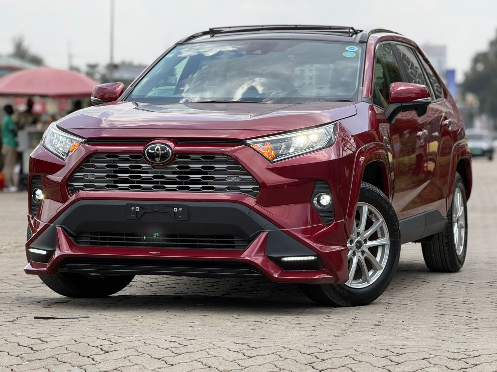 Draped in a deep maroon finish, this 2020 Toyota RAV4 commands attention with its sharp, modern design and confident road presence. The sculpted body lines, aggressive front grille, sleek LED lighting, and elevated stance give it a perfect balance of urban sophistication and rugged SUV appeal. The addition of a panoramic sunroof elevates its premium feel, letting in natural light and enhancing every drive.