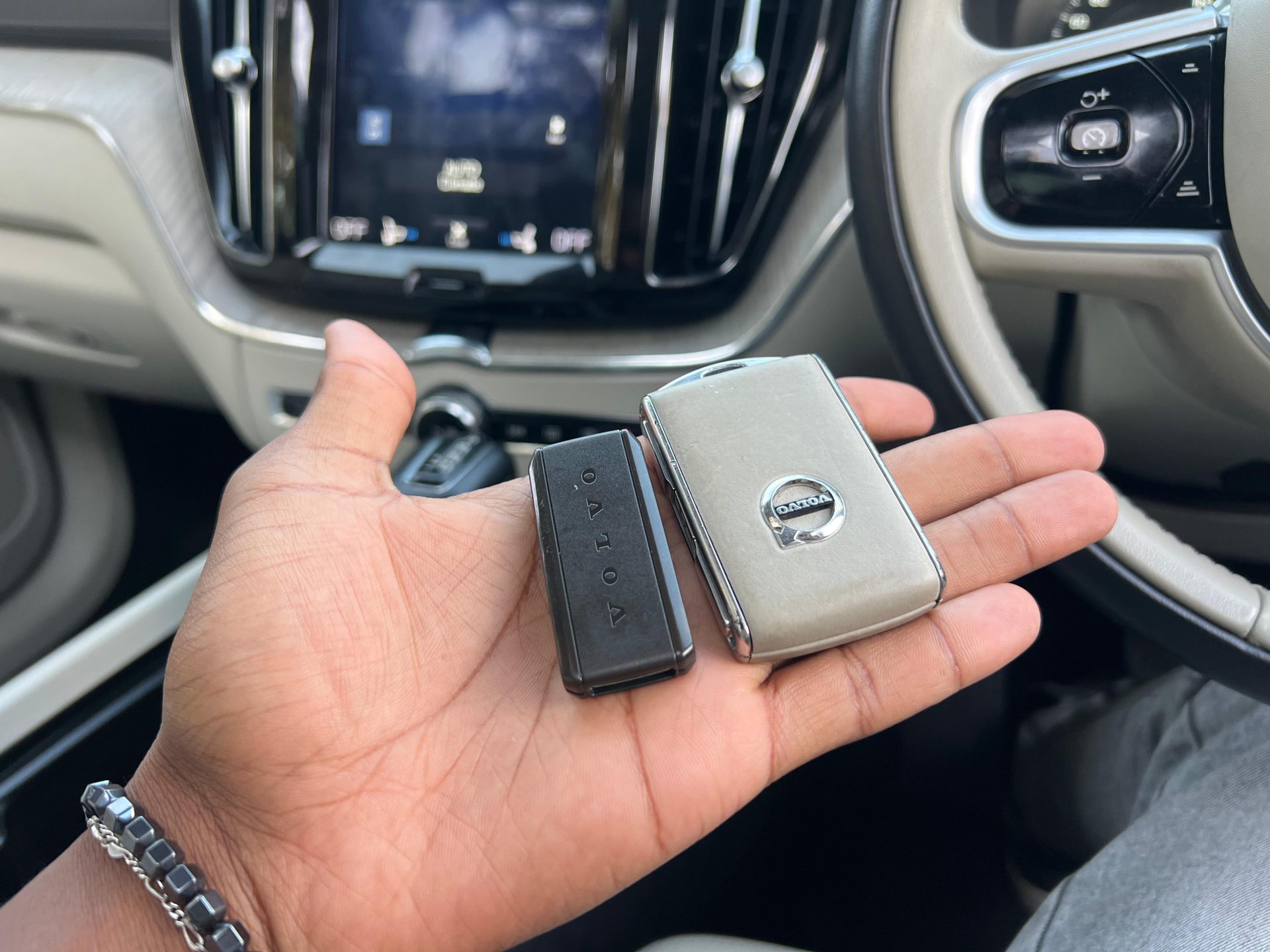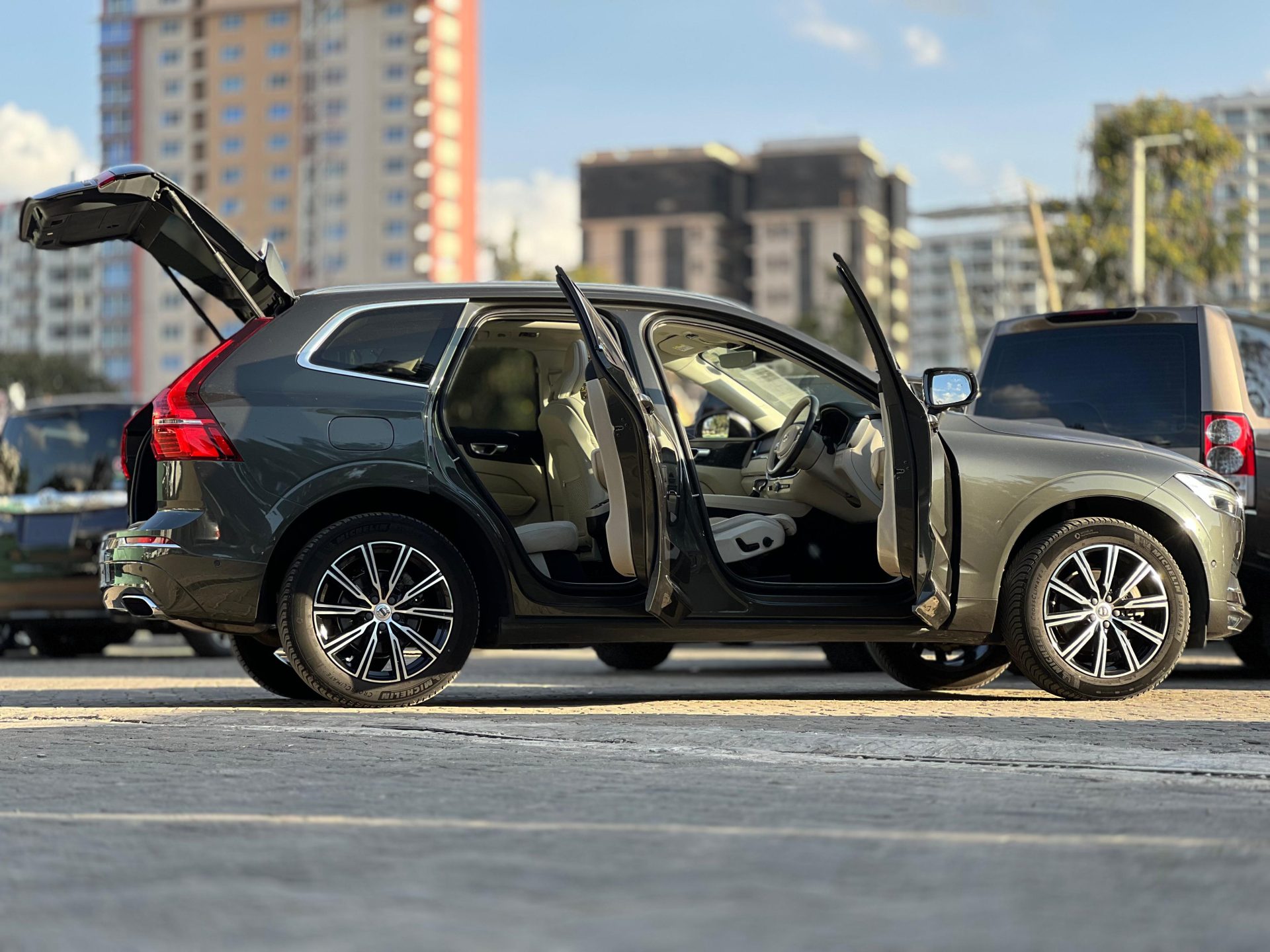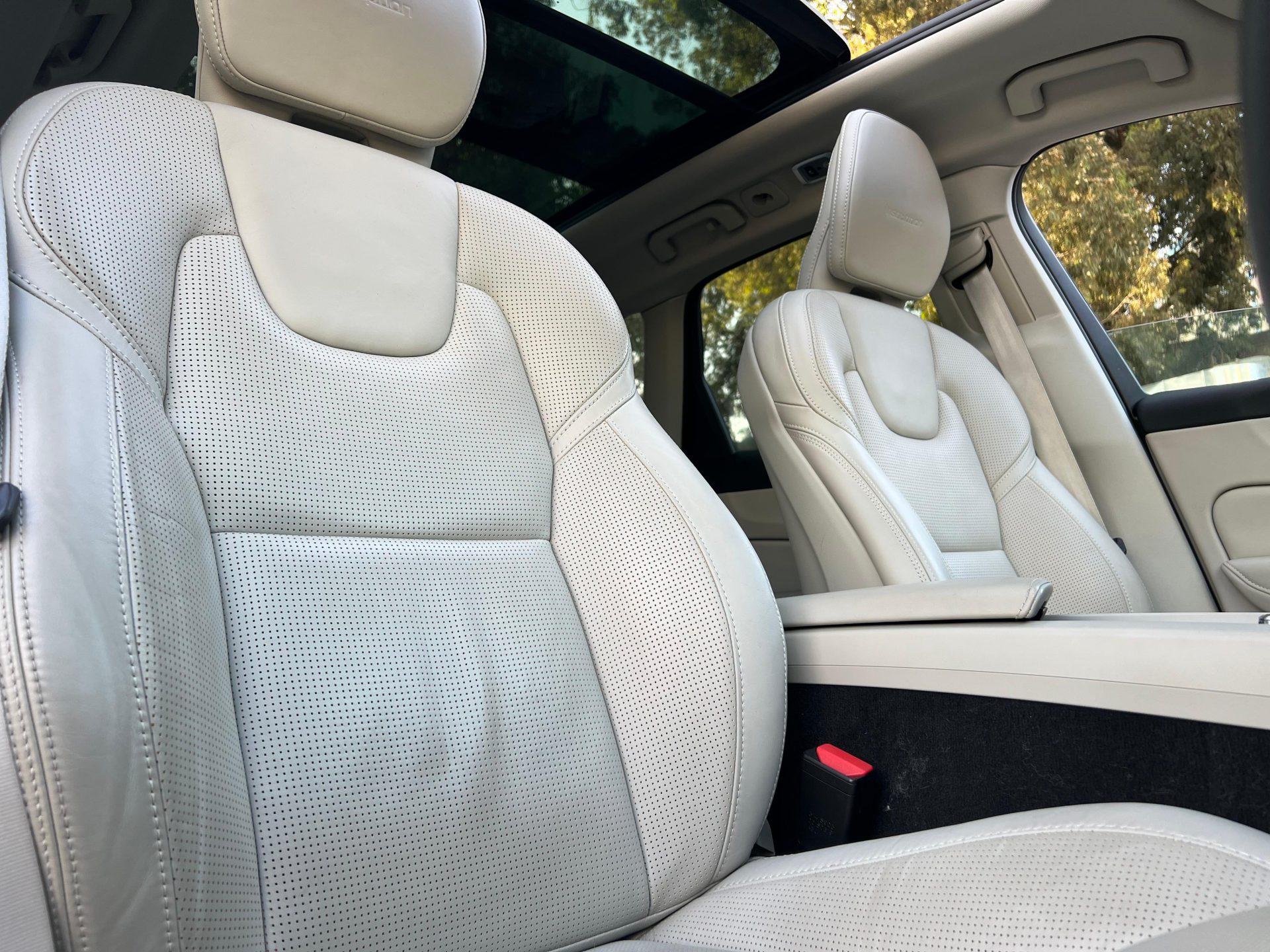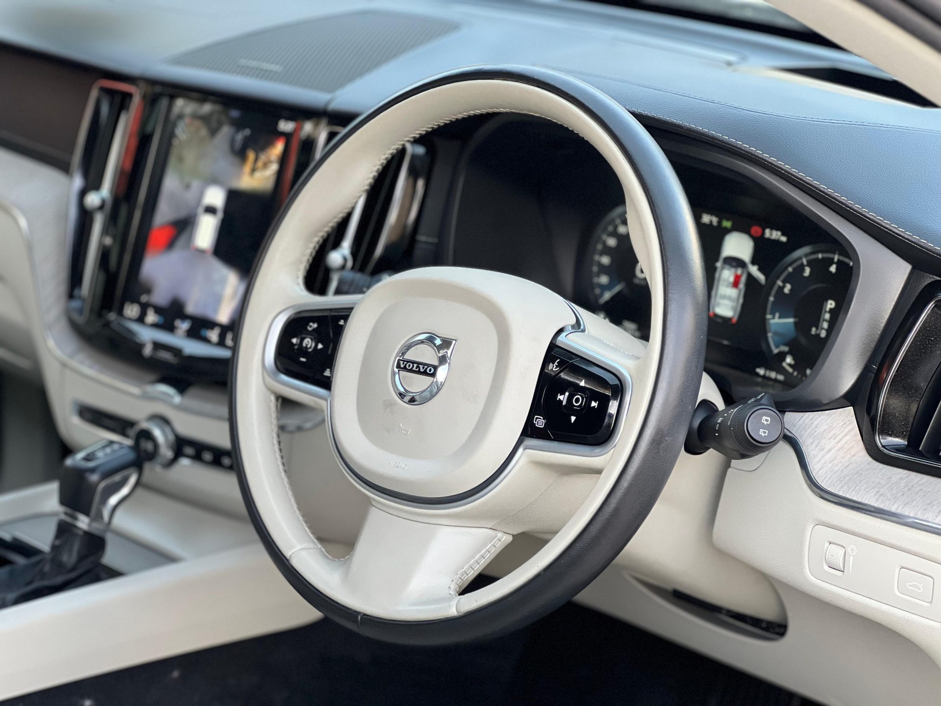​The cabin is a sanctuary, defined by minimalist design and a focus on ergonomic excellence and high-quality materials. Volvo seats are renowned worldwide for their comfort and support, which is crucial for long drives. The vehicle pictured features premium leather upholstery (Blonde/Beige), elevating the feel of the cabin.The portrait-oriented 9-inch Sensus Touchscreen controls most vehicle functions and supports smartphone integration. This system keeps the dashboard clean and uncluttered. The large Panoramic Sunroof floods the cabin with natural light, enhancing the sense of space and airiness. The trim level often includes premium audio (like the visible Harman Kardon system) and elegant wood trim. The vehicle includes thoughtful features like power boot and front seat heating, confirming alignment with your preferred comfort features.